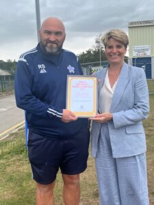 We have an individual award too, and it was an honour to present an award to one of our two outstanding individual volunteers, Rick Skelton, whose tireless commitment to Hessle Rangers CIC has made a lasting impact.