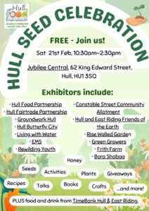 With all the rain I doubt any of us have spent much time in the garden, but January is behind us, the days are getting longer and nature is starting to show signs of life. If you’re starting to think about planting and growing, the fantastic Hull Seed Celebration is here again this Saturday, the 21st February 2026, from 10:30am-2:30pm at Jubilee Central, 62 King Edward Street, hosted by Hull Food Partnership.